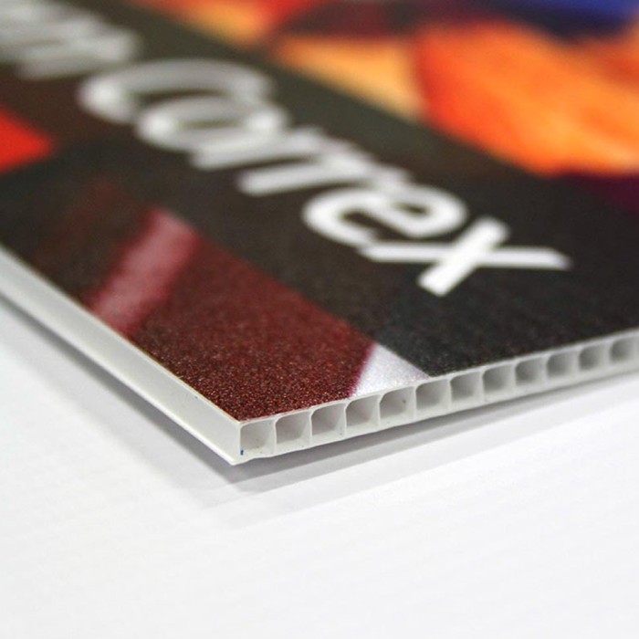 Correx is a lightweight, fluted polypropylene board commonly used for temporary signage. It is durable, weatherproof, and easy to mount, making it ideal for outdoor applications.
