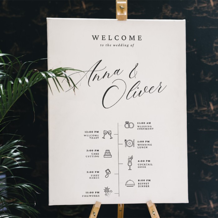 - Wedding welcome signs, seating plans, and table displays