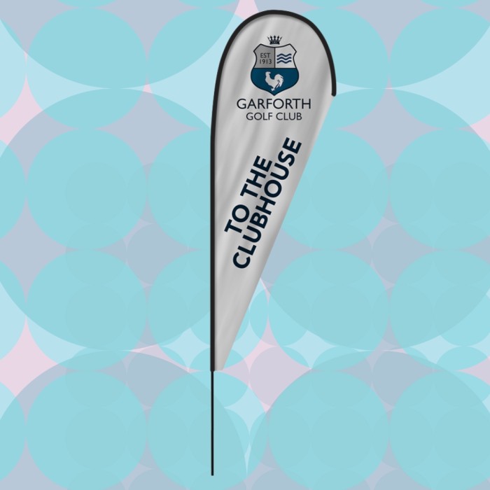 Teardrop Flags have a rounded top and pointed bottom, with a taut finish that prevents excessive flapping in the wind. They're a great option when you want your branding to remain clearly readable at all times.