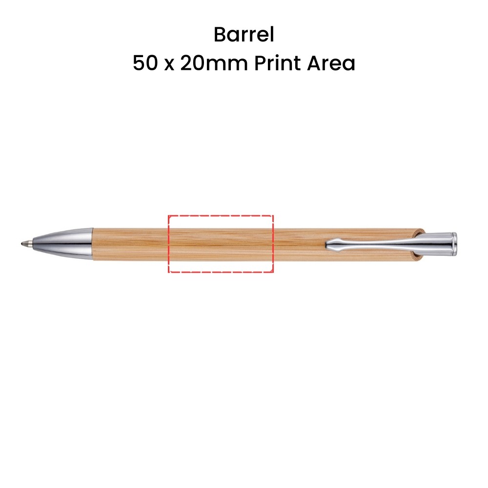 The Branded Bamboo Ball Pen is the perfect eco-conscious promotional pen for businesses wanting a more sustainable alternative to traditional plastic pens. Featuring a natural bamboo barrel paired with sleek silver metal accents, this pen delivers an elegant, professional finish that aligns perfectly with environmentally responsible branding.