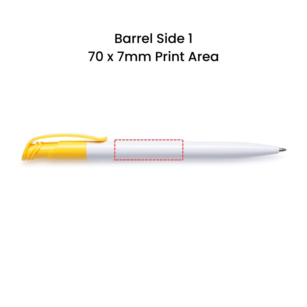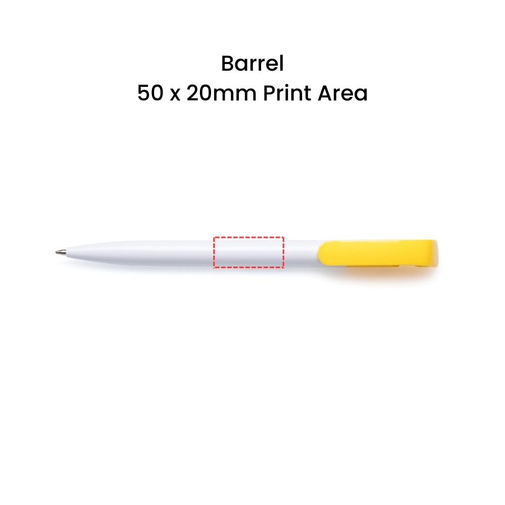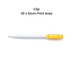 The Branded Clip Ball Pen is the ideal low-cost promotional pen for businesses, schools, charities and event organisers wanting effective branded merchandise without the premium price tag. Featuring a clean white gloss barrel, a choice of 10 clip colours, and multiple branding areas, this pen delivers excellent visibility for your logo while staying reliable, durable and professional.