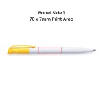 These branded clip pens allow businesses to promote their brand in a practical, everyday format. With a clean white barrel and a coloured clip, they offer a modern, professional look suitable for any sector.